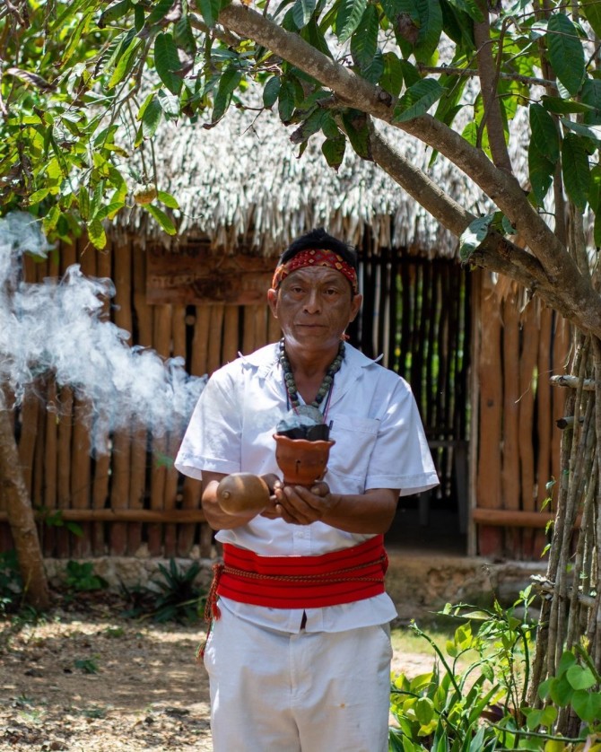 Przejazd do zagubionych w jukatańskiej dżungli ruin starożytnego miasta Coba. Jazda rowerami lub rykszami i zwiedzanie piramid, świątyń, steli i malowideł. Wizyta w rodzinnym domu kapłana i uzdrowiciela. Zwiedzanie prywatnej kolekcji kalendarzy i instrumentów muzycznych. Degustacje potraw z pieca ziemnego oraz miodu dzikich pszczół z przydomowej pasieki.